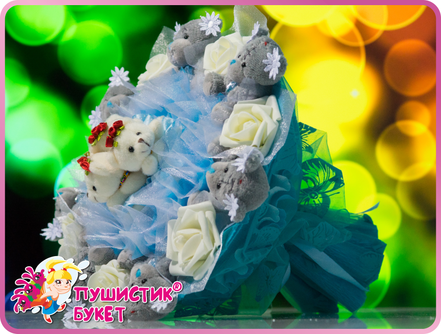 7 мишек "Тедди" по 7 см, 3 мишки по 6 см и 7 розочек.